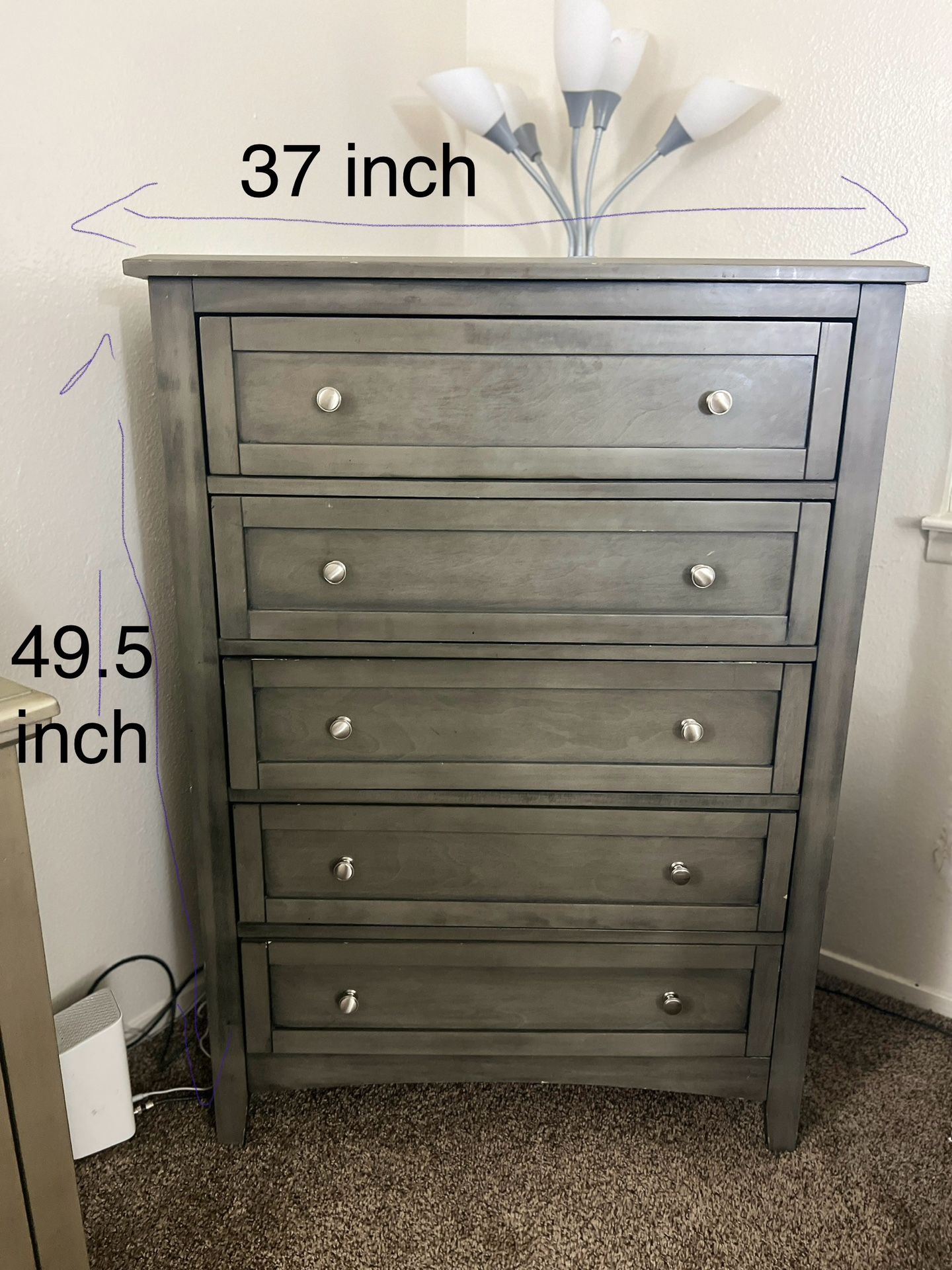Beautiful modern dresser in good condition. Width: 37 inches Height: 49.5 inches All drawers open and close smoothly. Perfect for bedroom or guest room. Asking $160 OBO Pickup only.