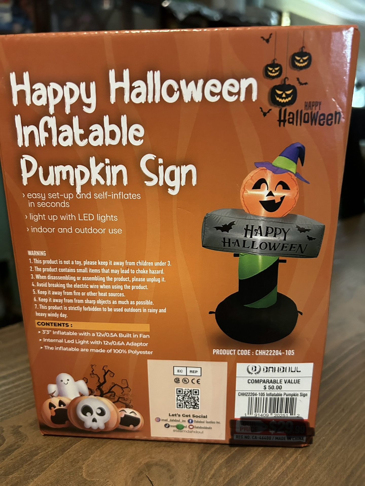 Inflatable Halloween Sign 3.3 Ft Height Retail $.50.oo
