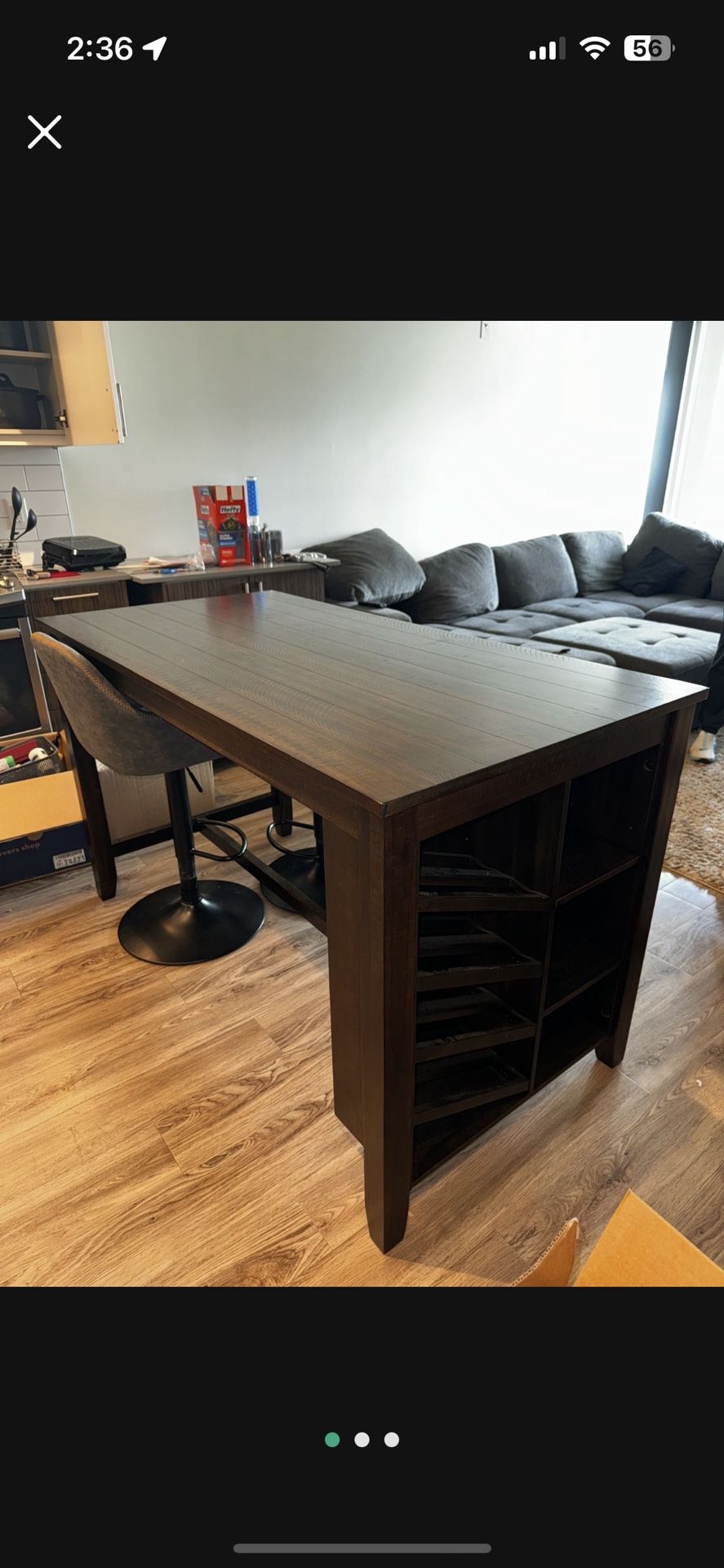 Great bar height kitchen table with wine storage on the end. Originally $700 plus tax on Wayfair just 3 months ago.
