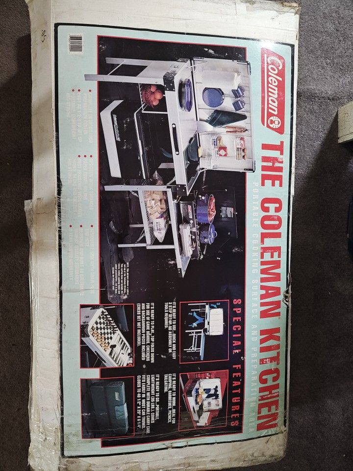 Vintage Coleman Exponent Camping Kitchen Portable Folding Game Table Sink & Case Brand New Open Box
