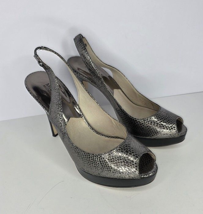 Michael Kors Leather Metallic Silver Stiletto 5" Heel Peeptoe Slingback Sandals 9