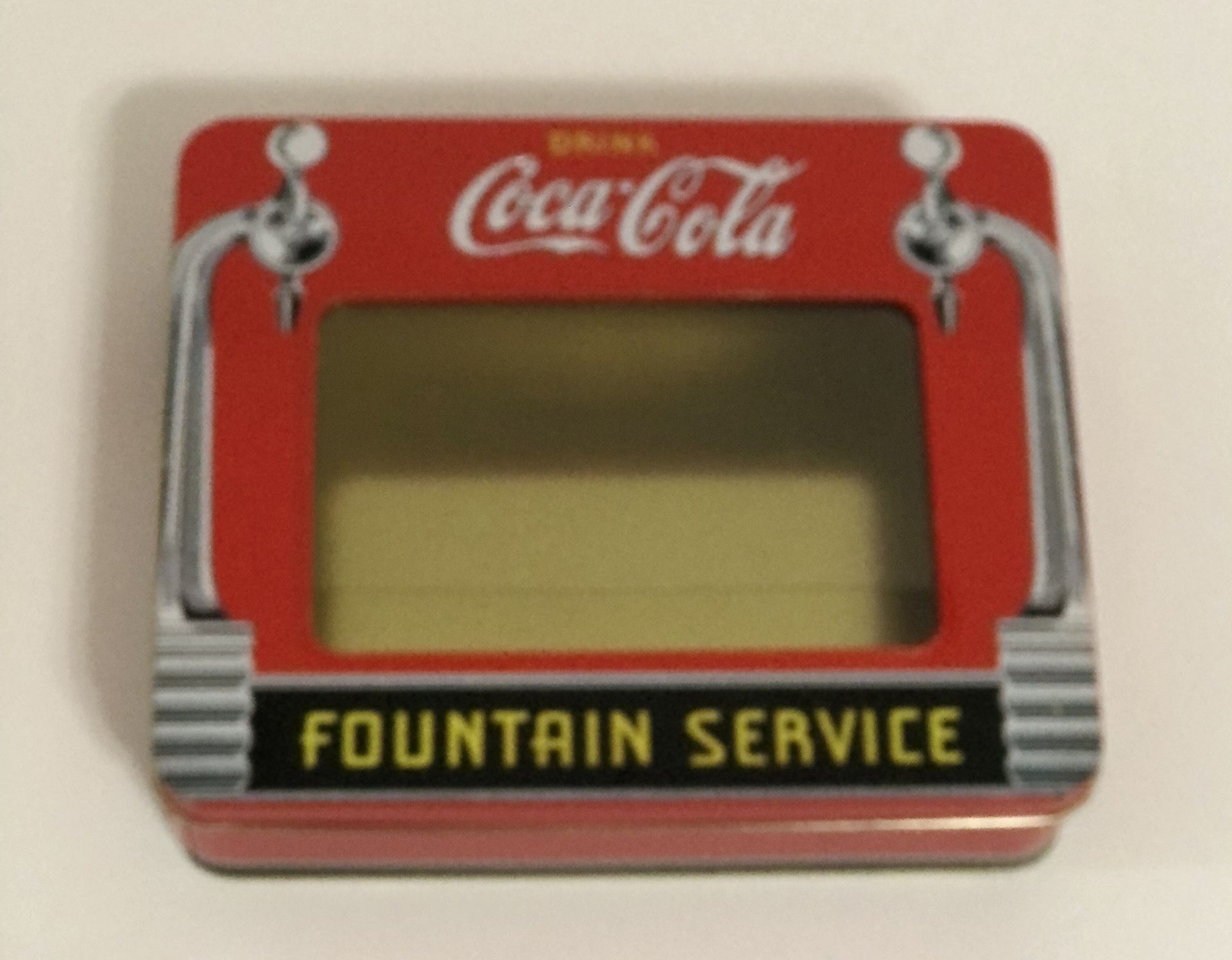 Vintage Coca-Cola Photo Box Tin Box. Fountain Service Collector’s Tin - Coca Cola Collectible Coke Memorabilia Ephemera Storage Box Tin. Display One Photo and store the rest inside. Makes a great Gift Box Holds up to 4 X 6 Photographs. The tin measures 8 inches long by 6 1/2 inches wide by 2 1/16 inches tall. The lid sits tightly on the tin and is in good vintage condition. Whether for the new collector or the connoisseur, this beautiful piece will be a lovely addition to your vintage Coca-Cola collection!! Fast Shipping