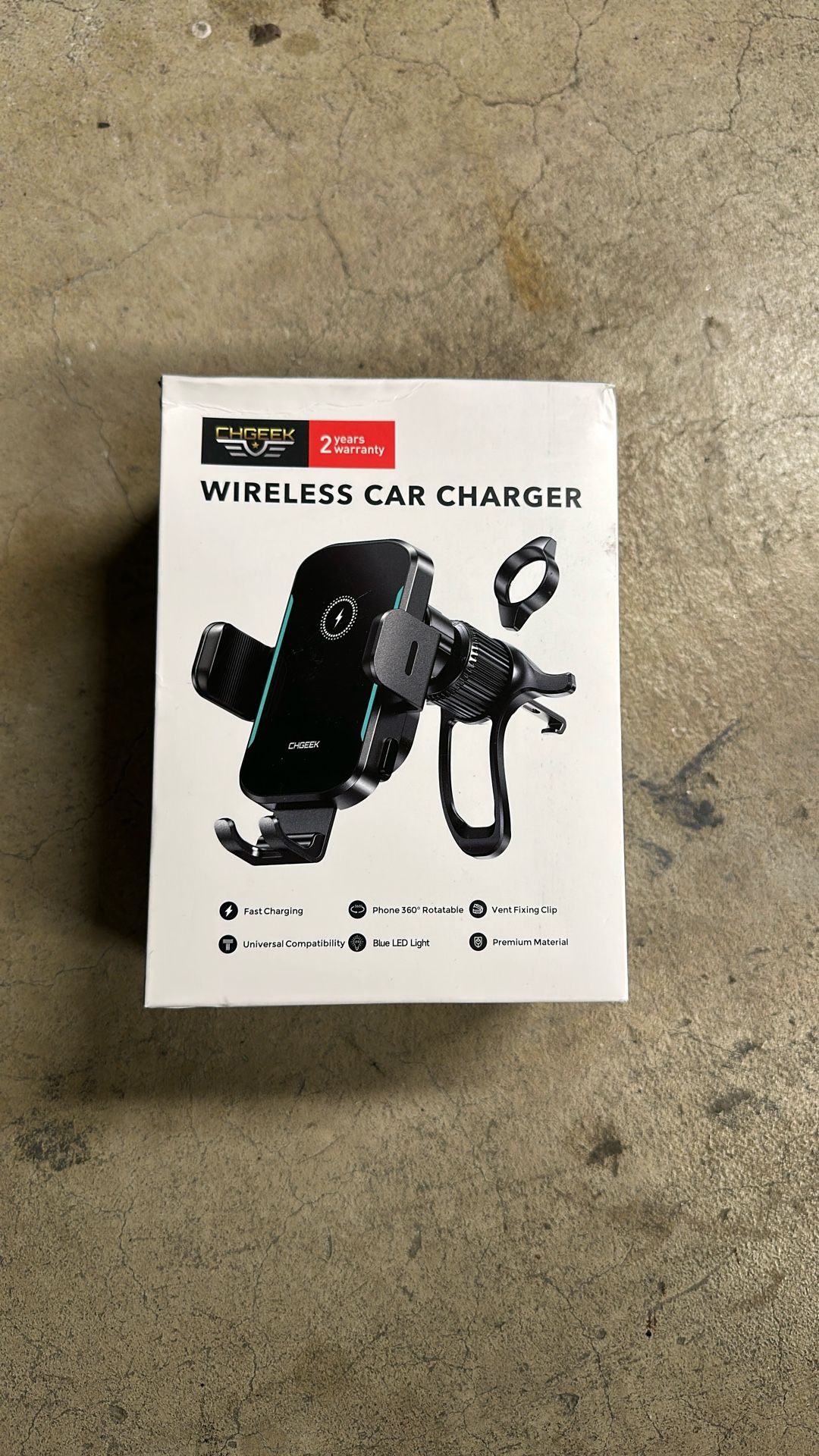 CHGeek 15W Wireless Car Charger – Auto-Clamping Qi Fast Charging Vent Mount with LED Light; Compatible with iPhone 13-16 & Samsung S22-S24