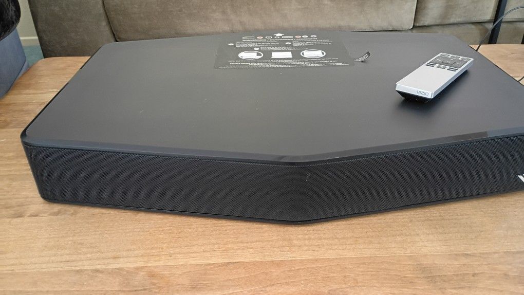 Vizio sound stand 21 inch 2.1 channel sound system sits under TV up to 55 inch 5.25 subwoofer with remote in excellent condition. $100.00 OBO.