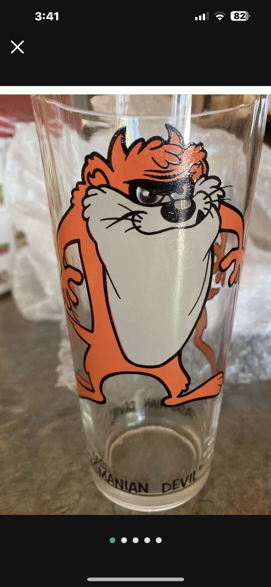 Tasmanian Devil Taz 1973 16oz Brockway Pepsi Looney Tunes Glass Black Writing