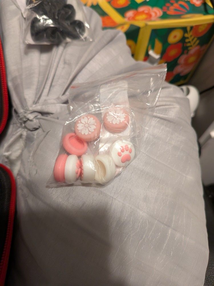 Please go over the buttons for controllers for the Nintendo switch. One set appears to be legend of Zelda, pink ones. Might be animal crossing or something. Seem to be new.