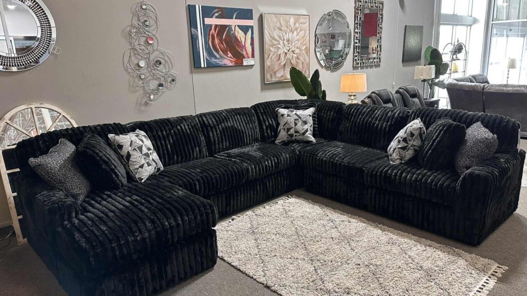 Take Home Pay Later Only $39 Down Payment π Madness Black Color Corduroy Sectional Couch Set π Fast Delivery