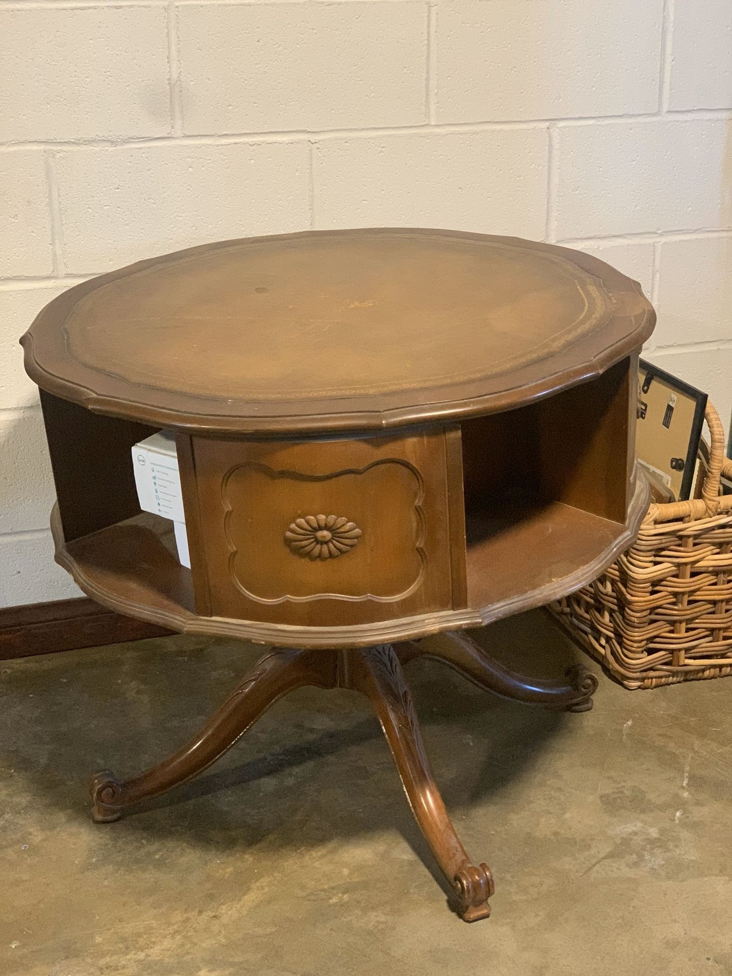 Nice antique Has some cubbie spacing for hideaway Ornate piece