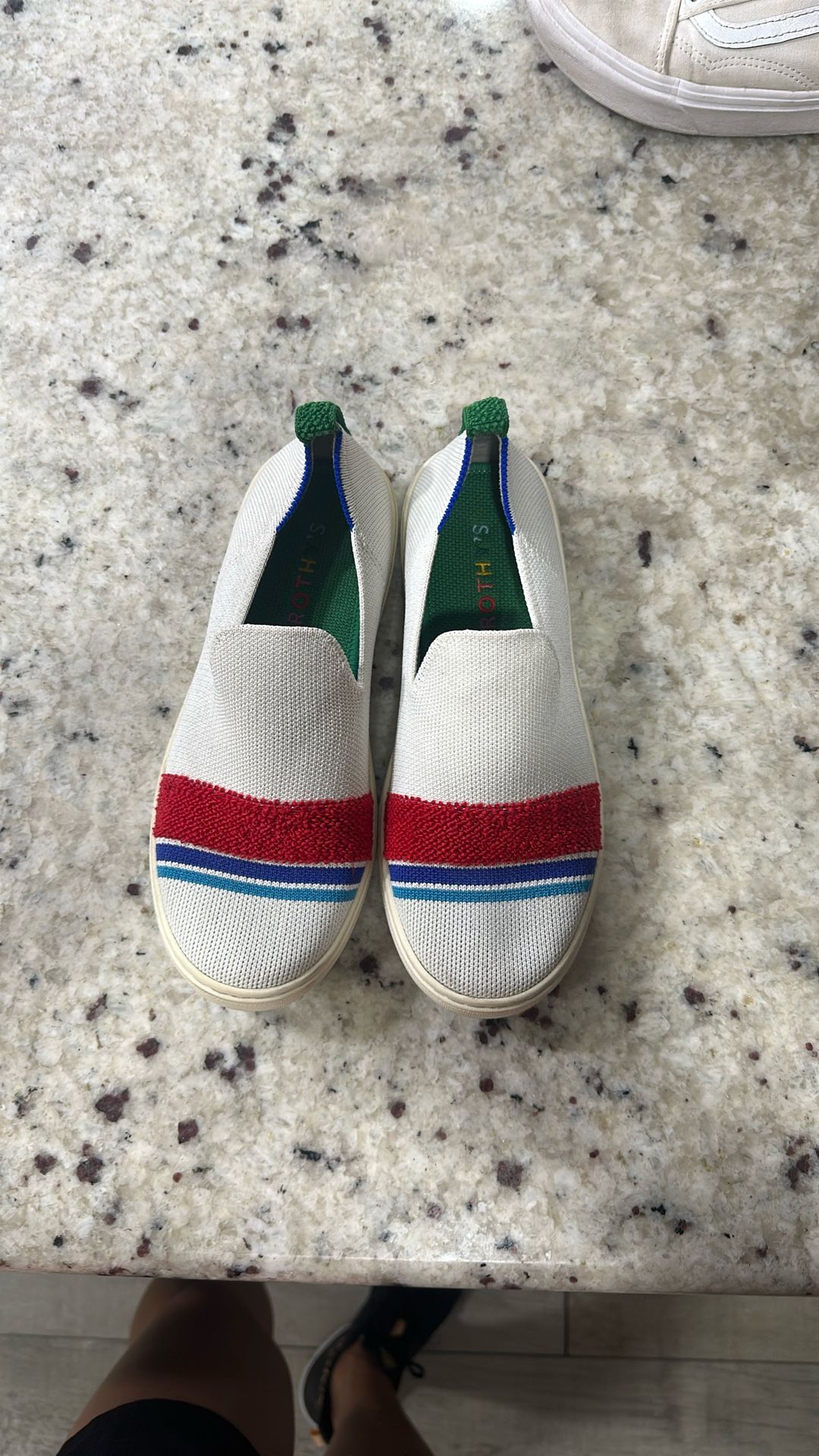Size 4 Lollipop White Red Terry Stripe Sneakers Located Gilbert and Warner