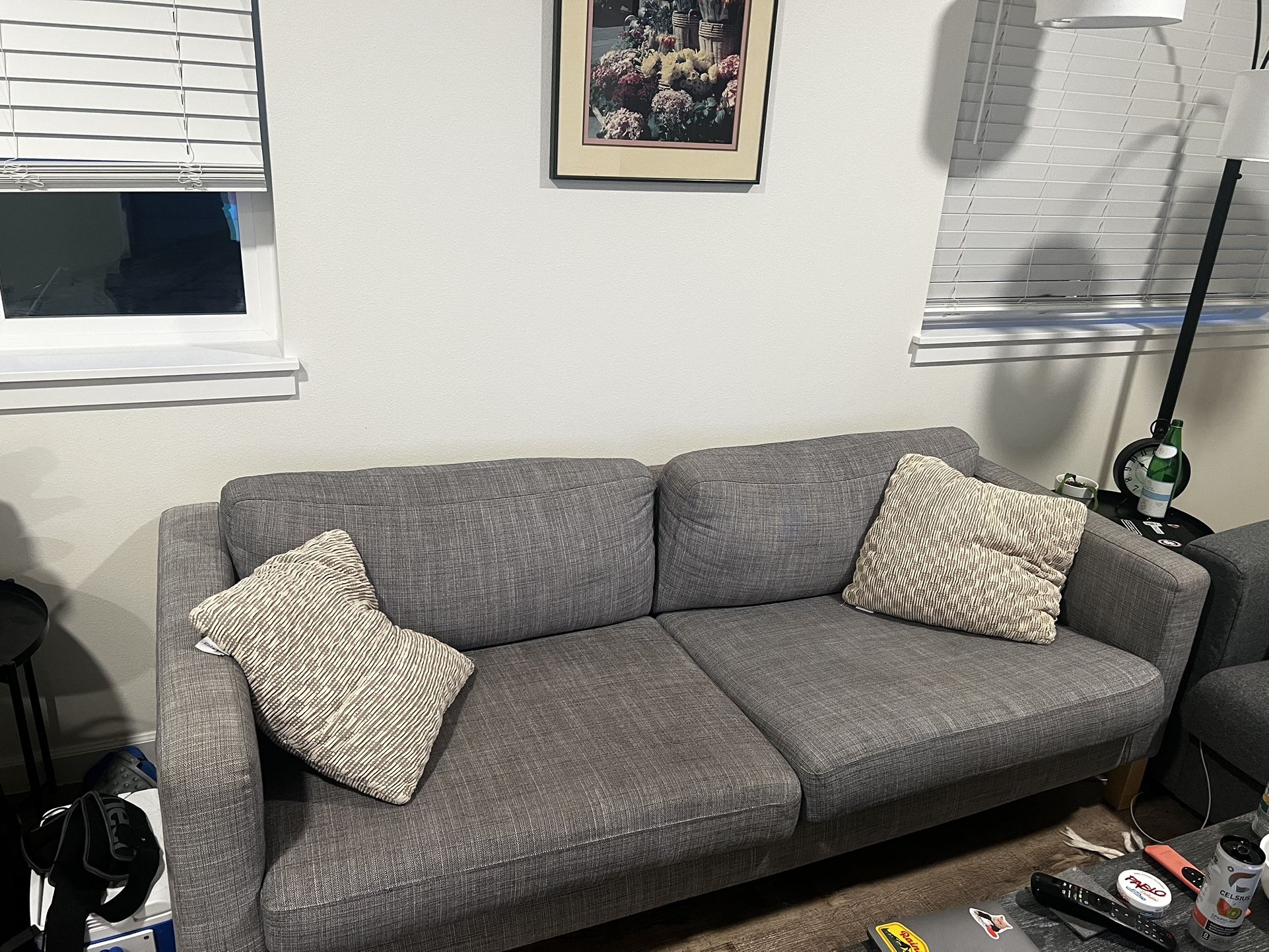 FREE COUCH. Light grey couch, good condition, no tears. Covers are washable. Current owner has not had any pets on the couch. Need gone ASAP