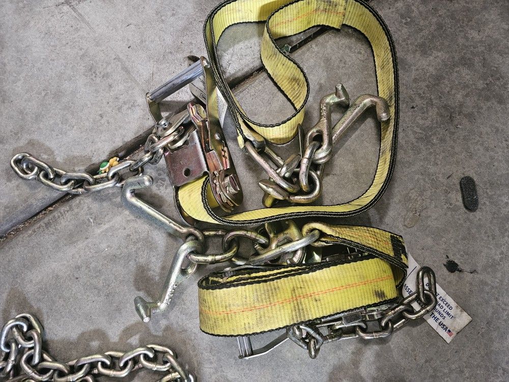 B/A product. 5pc tie down 8 points with ratchet straps and chains hooks πͺ for auto transport . Axle tie downs . Thank you for checking out another one of my listings from Joe's Garage.
