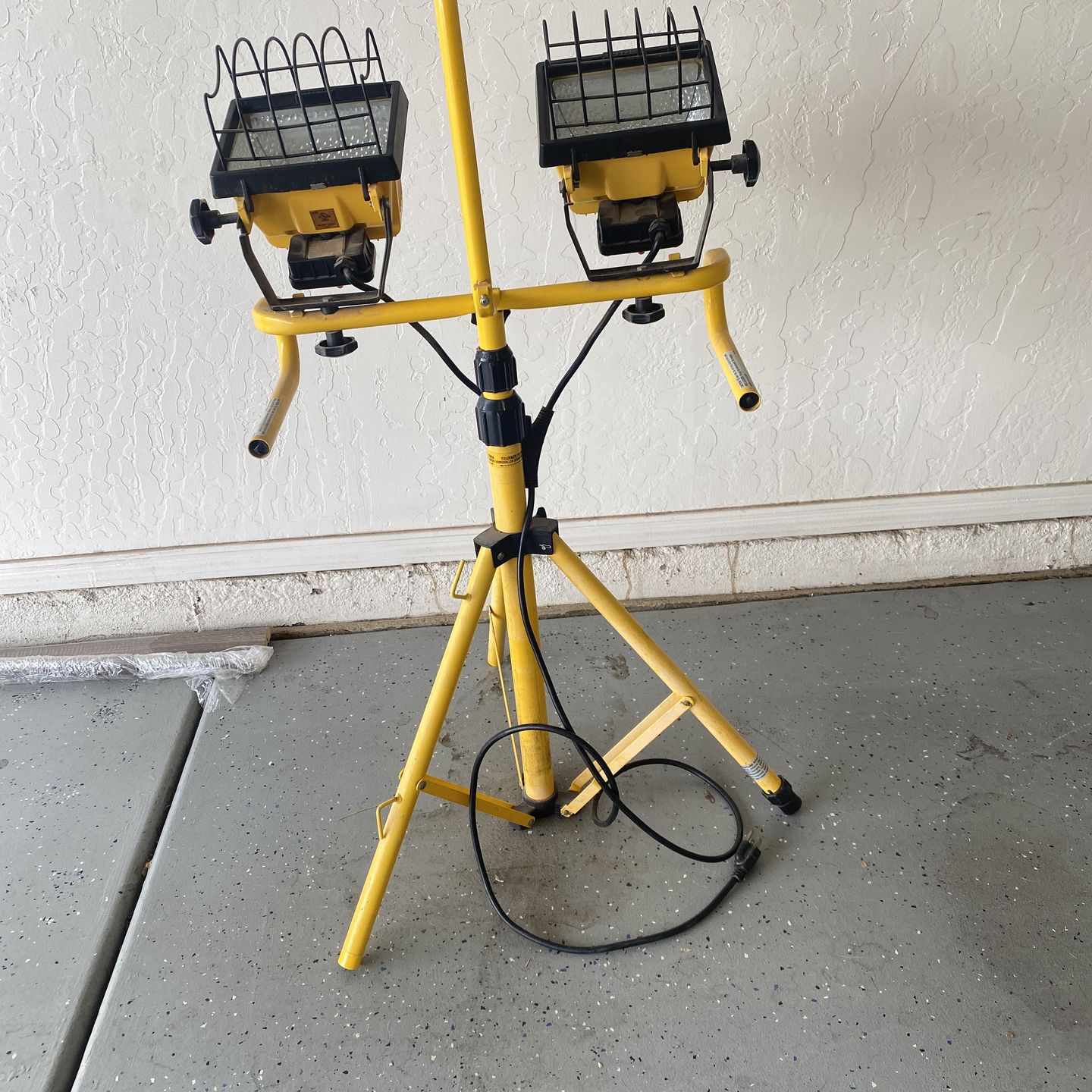 Yellow Dual Halogen Work Light on Tripod. You can use one or both lights. Location: Chandler Ray Rd and Kyrene If listing is active, item is available. If you message me do the courtesy to answer back.