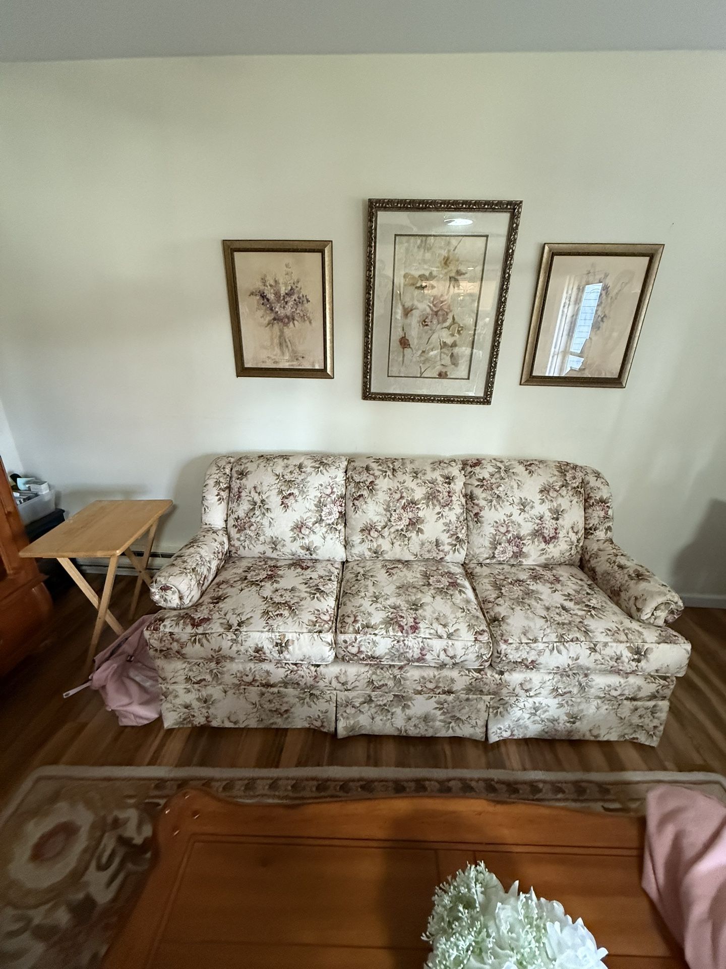 Couch & Wing chairs in good condition Couch 80” wide 36” Deep 34” floor to top of couch Wing Chair 40” High 30” Wide 21” Seat from floor