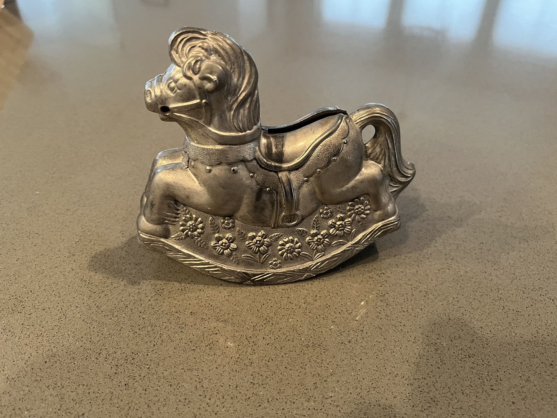Vintage Leonard Silver Plated Rocking Horse Coin Bank