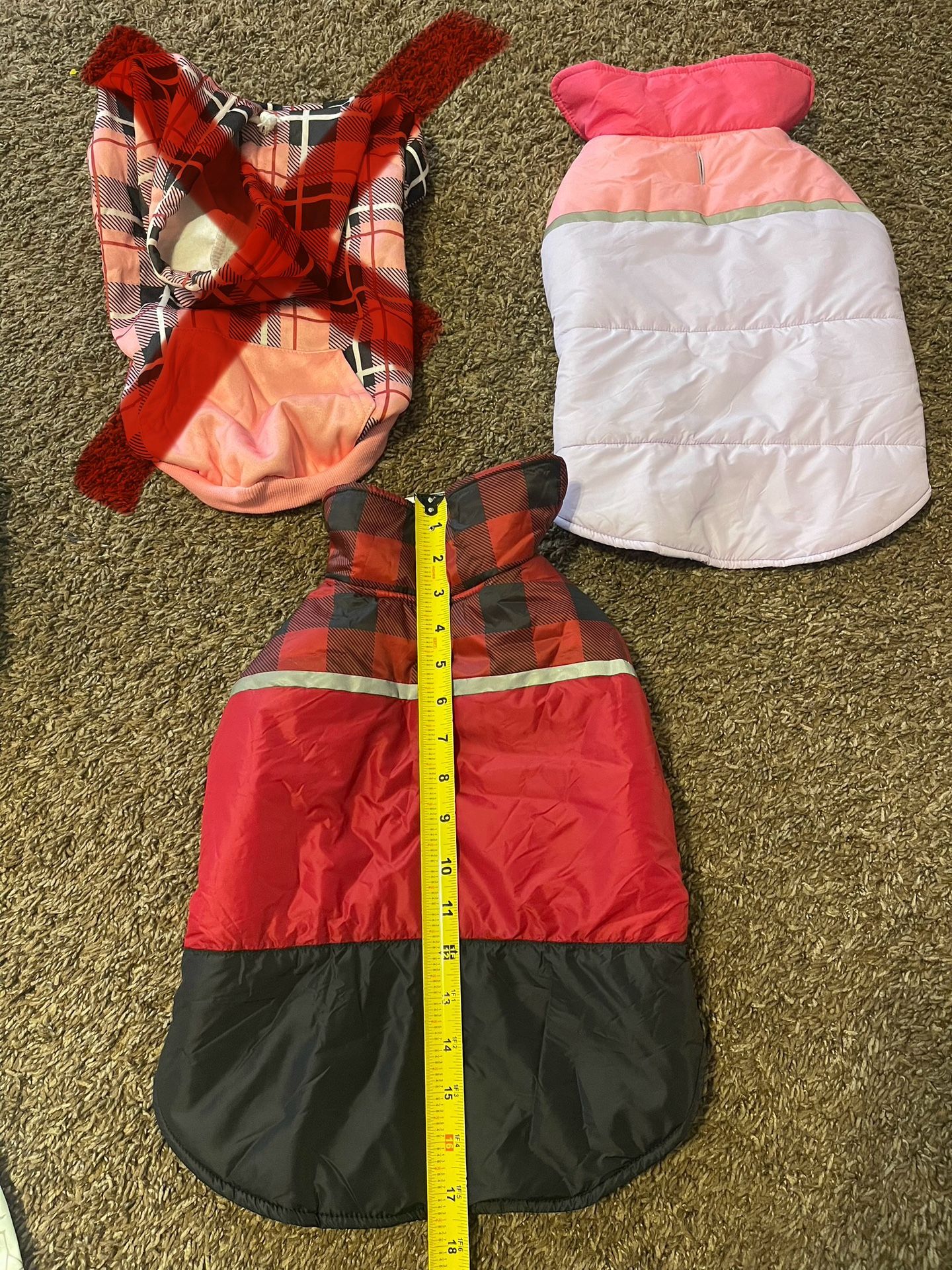 Medium dog jackets for $8 each. Have 1-pink and 2- red jackets. (Cash only)Located in Clovis.message only when ready to meet.