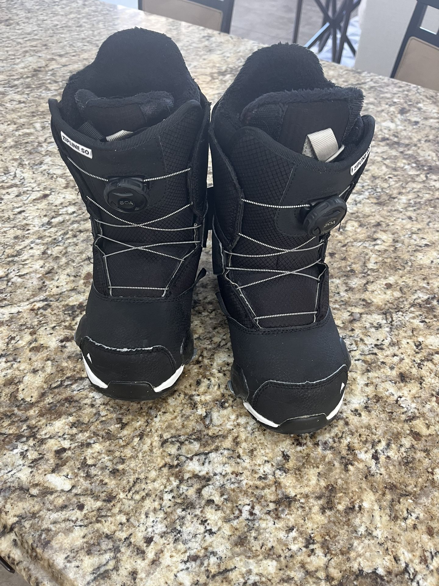 Like new. Use, but in very good condition. Kids outgrow them pretty quick. We have 2 pairs, a Size 4K and a size 5k. Size chart in the picture. Both pairs still available unless stated here otherwise. Burton, Capita, k2, snowboard, Ski