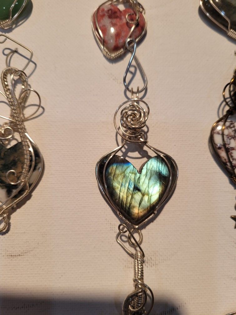 Pricing starts at $50 and up depending on size and stone. Handmade Wire Weave Beautiful and whimsical Heart Pendants See my other posts Perfect gift for you or a friend! Valentines, Mothers Day, Birthday 83rd Ave and Deer Valley Rd