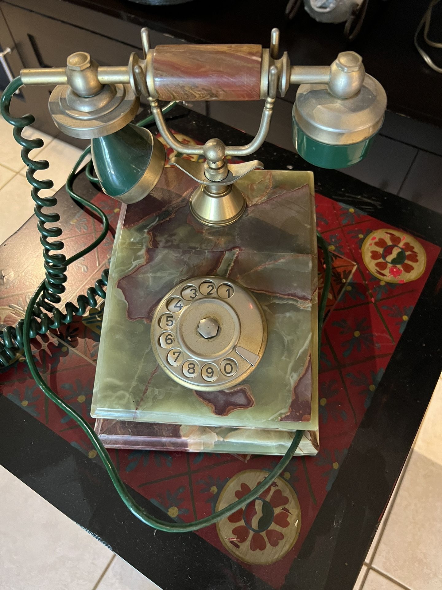 Onyx Stone Rotary Phone Works just needs new Jack Purchased in Italy 1976 Gold plated Cool and retro