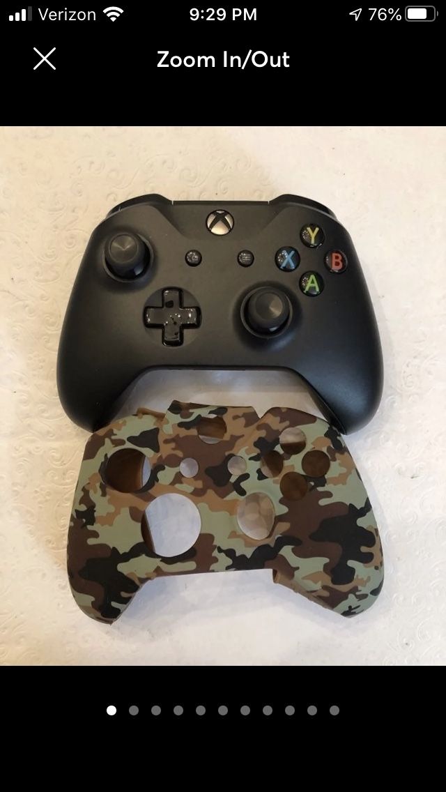 Brand new. Never been used. Black Xbox one controller includes silicone camo controller skin. Not in box. Came with my Xbox one Includes brand new third party charging cable, not pictured No trades