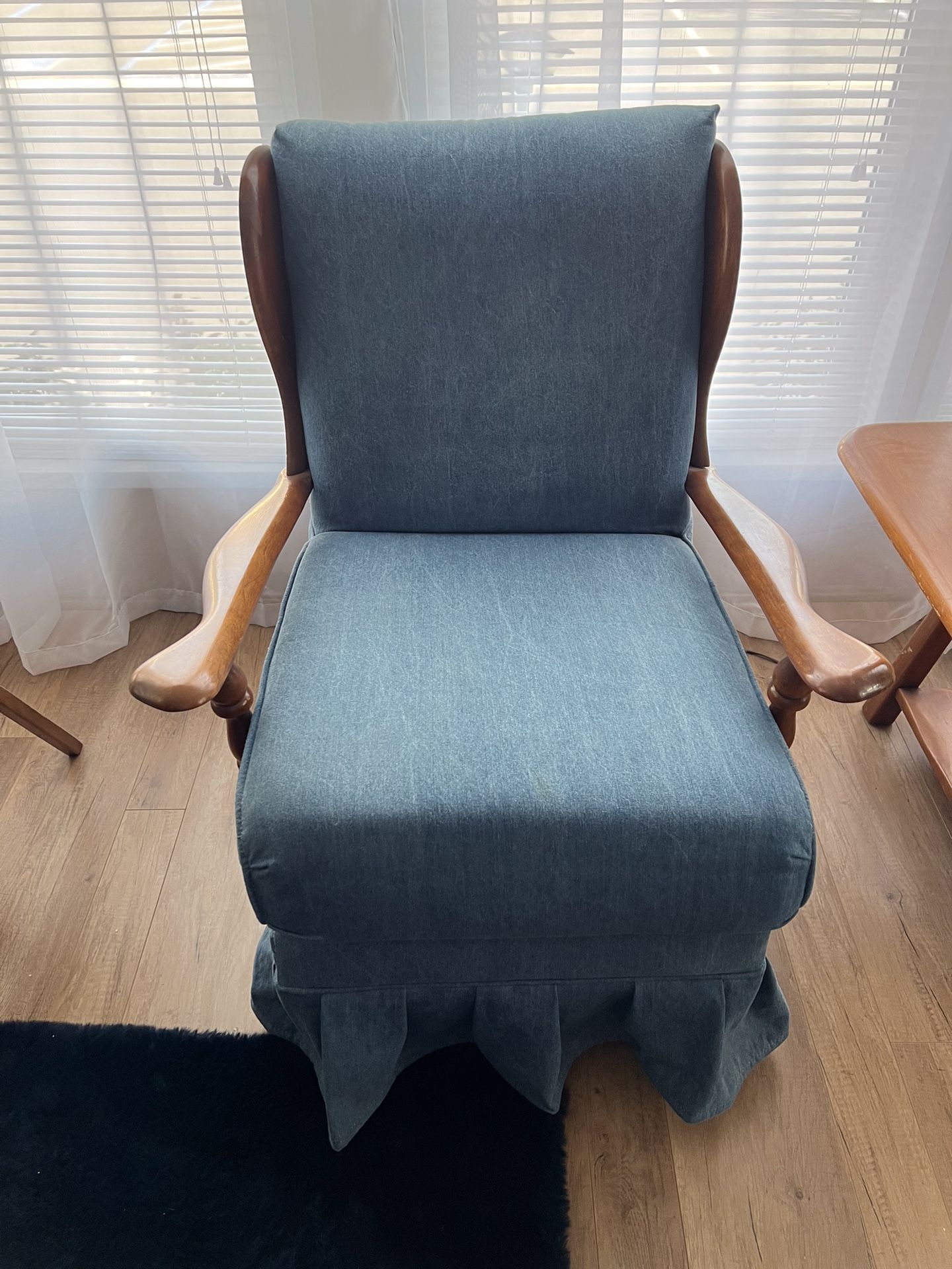 1950’s StyleCrest hardwood rocker. Upholstered in denim. One owner in great condition.