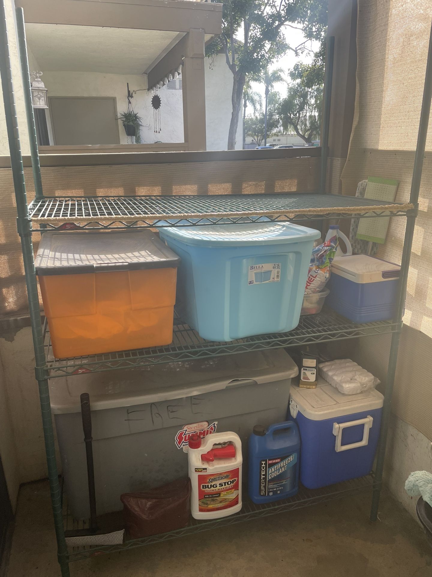 Storage rack. Used, but in perfect condition, 3 shelves. 75” high 47 1/2” wide 24” deep