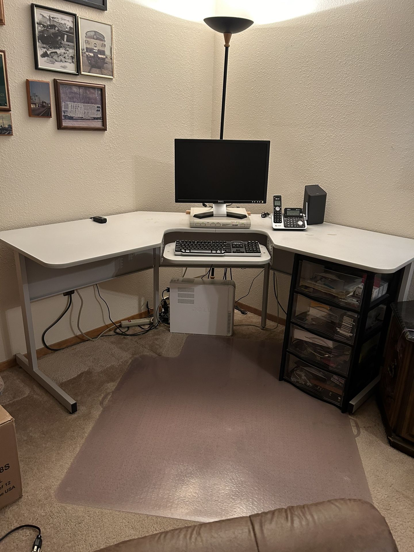 This measures 60 inches from corner of desk to wall. Has a place for key board.