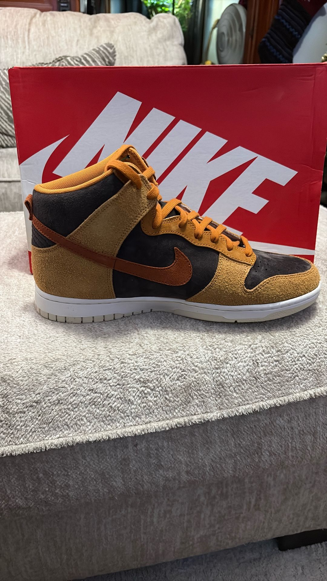 Suede Nike dunk high retro PRM velvet brown/dark russet, size 11 1/2, new in box. Have reciept