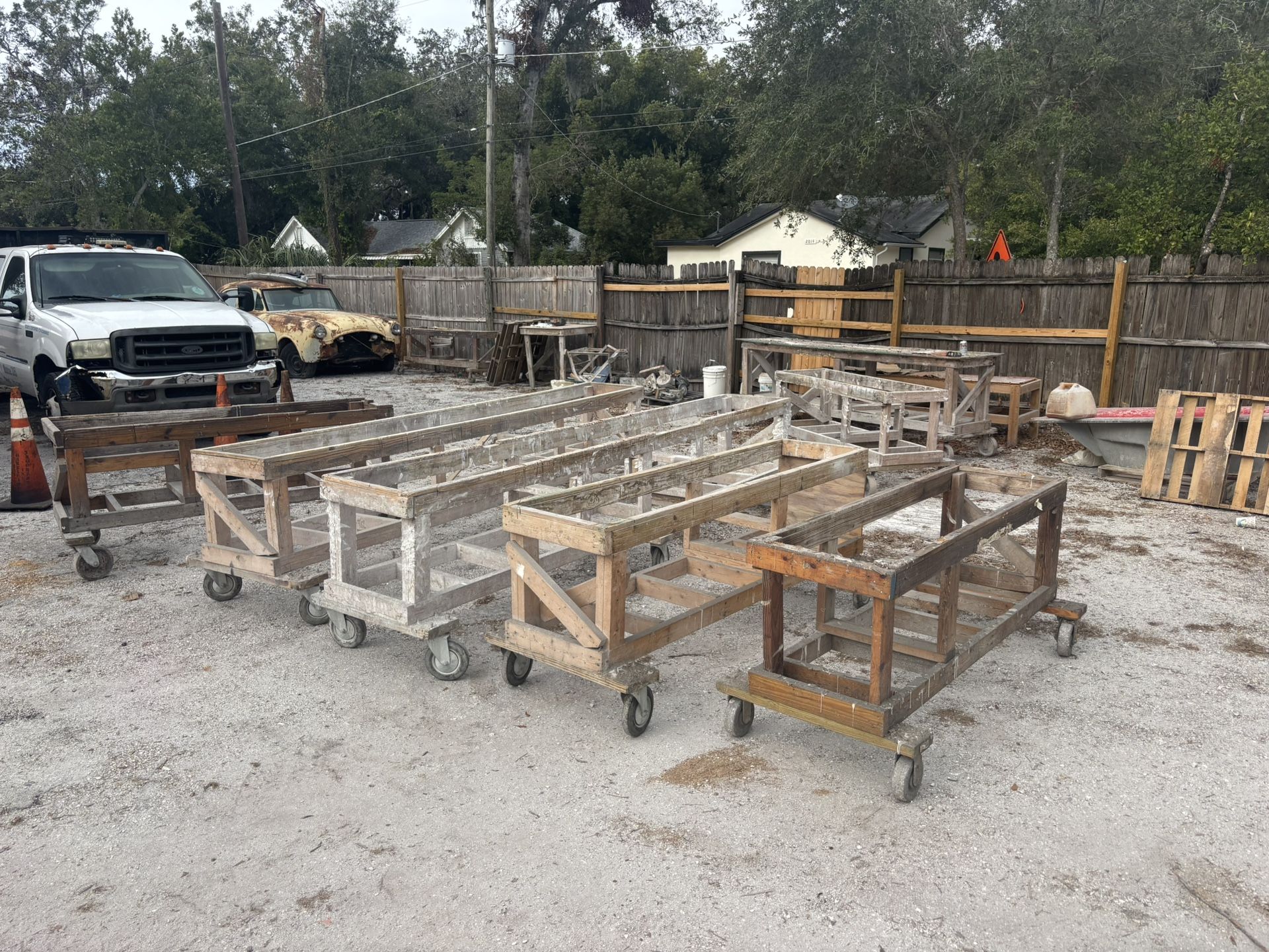 multiple shop carts in dollies different sizes 6 foot to 10 foot, 50 each or make as deal the one or all
