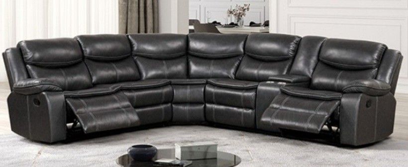 Onlinefurniturebroker.com βπ« We do not have a showroom. We deliver directly from the manufacturer to your home π . π Delivery is only $40 π οΈ Assembly is an extra charge. Price on assembly depends on which item you order! π΅ We accept cash on delivery Mattresses are sold separately π₯We are voted #1 on offer up, please also view other options on our page!!! Beds, bedroom sets, sectional, sofas, daybed, futon, vanity, dining set, chairs, recliner, Loveseat, dresser, queen bed, king bed, desk, kitchen cabinets, shaker cabinet, grey sectional, leather sectional, reclining sectional CM6982DG-SECT Stretch out your legs and lean back into a comfortable position without having to fight over seats! You and your family can all enjoy reclining functions with this comfortable sectional. Each seat comes upholstered in breathable leatherette for a cool and relaxing experience. Plush cushions and baseball stitching accents add shape and dimension to your stylish living room! Double Stitching Plush Cushions Recliners Console w/ Storage and 2 Cup holders Sectional. 123"L X 110 1/2"W X 41"H