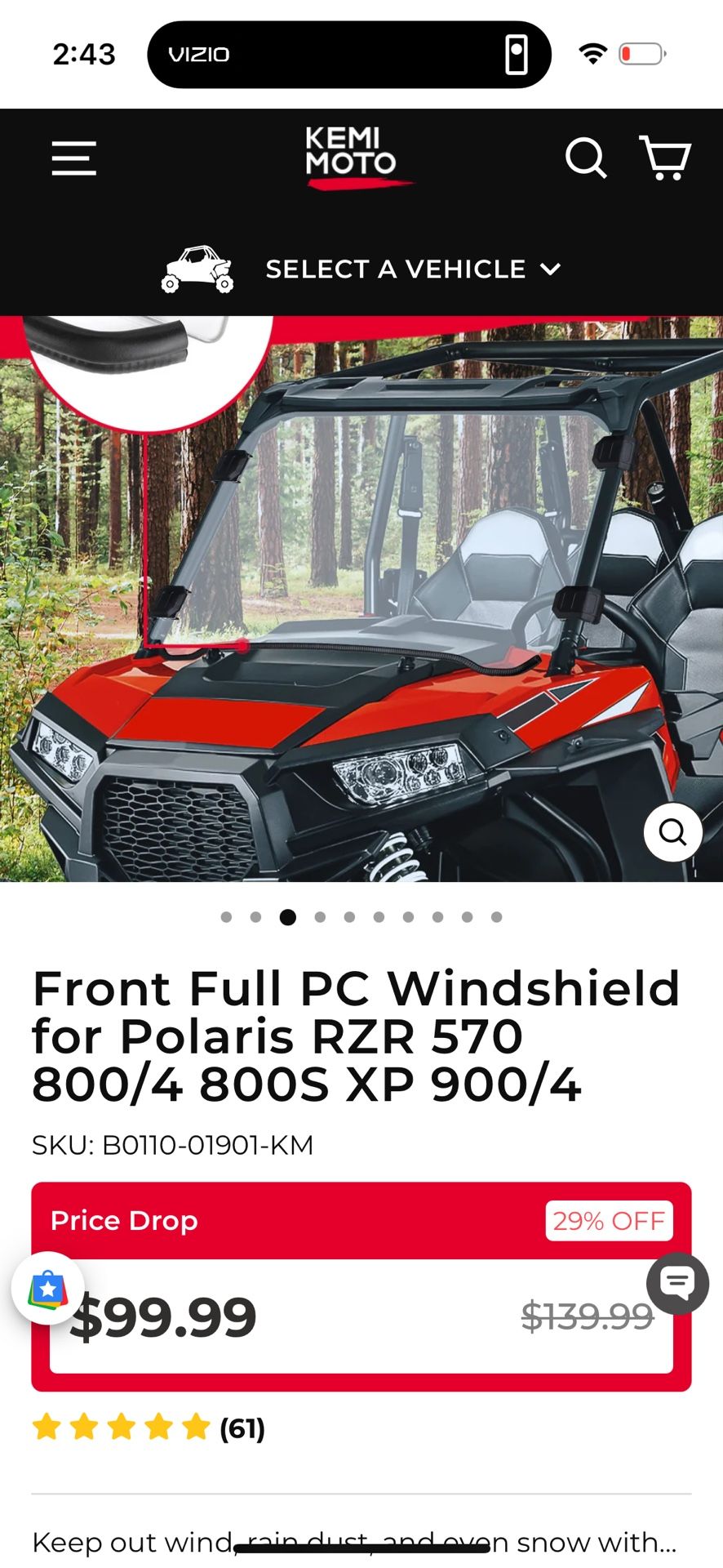 Front Full PC Windshield for Polaris RZR 570 800/4 800S XP 900/4