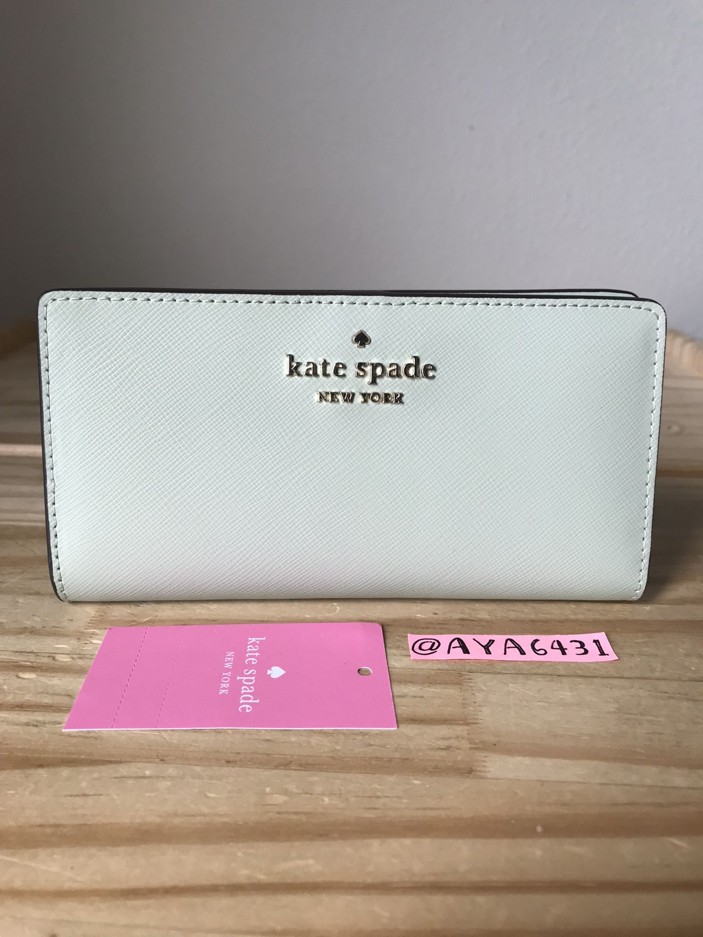 100% authentic Kate spade Staci large slim bifold wallet Sage bundle and gold hardware Brand new with tags 6 3/4” L x 3 1/2” H