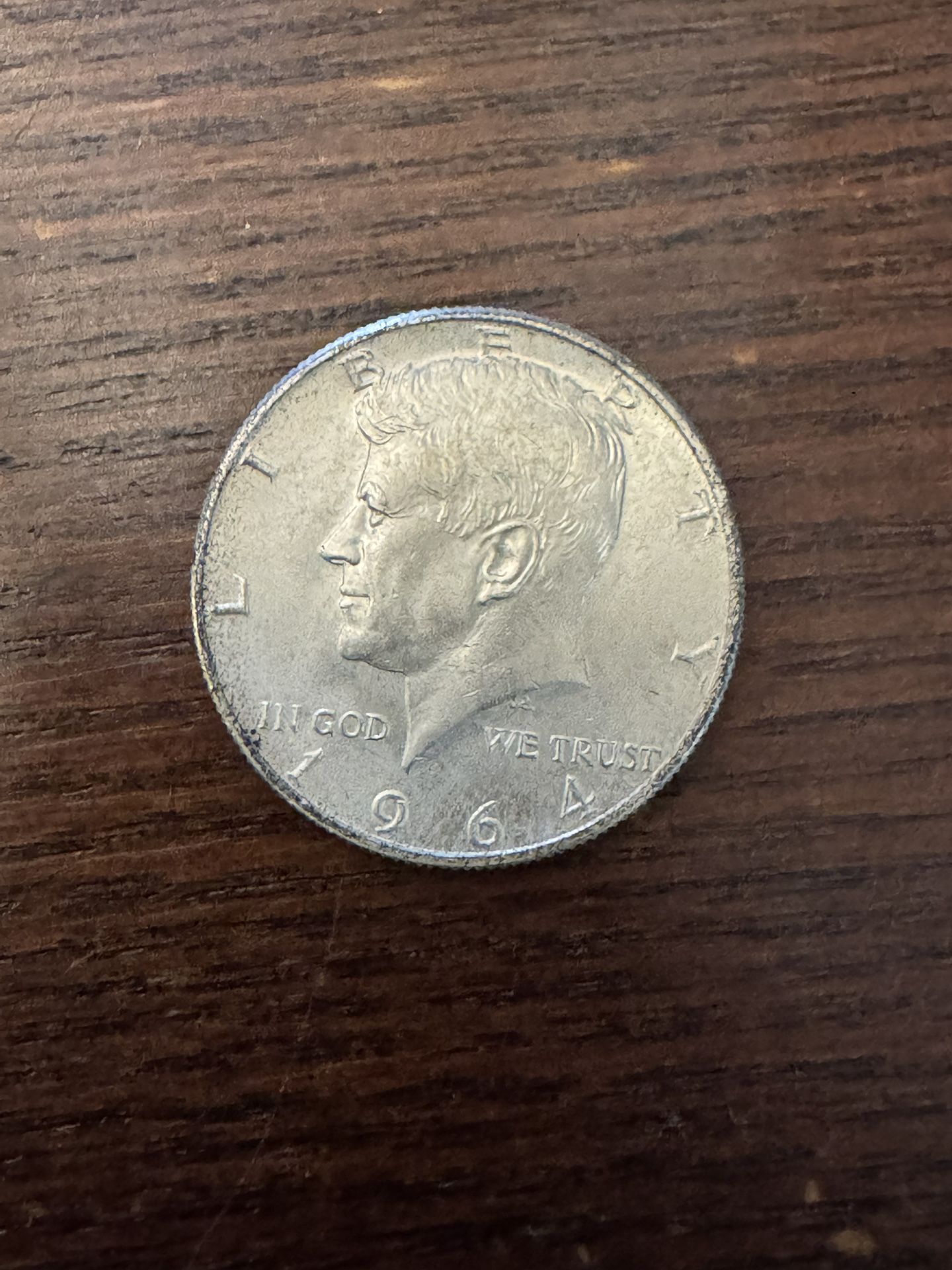 Coin Specifications Category: Kennedy Half Dollar (1964) Obverse Designer: Gilroy Roberts Reverse Designer: Frank Gasparro Composition: 90% Silver Weight: 12.5000g ASW: 0.3617oz Diameter: 30.6mm Edge: Reeded