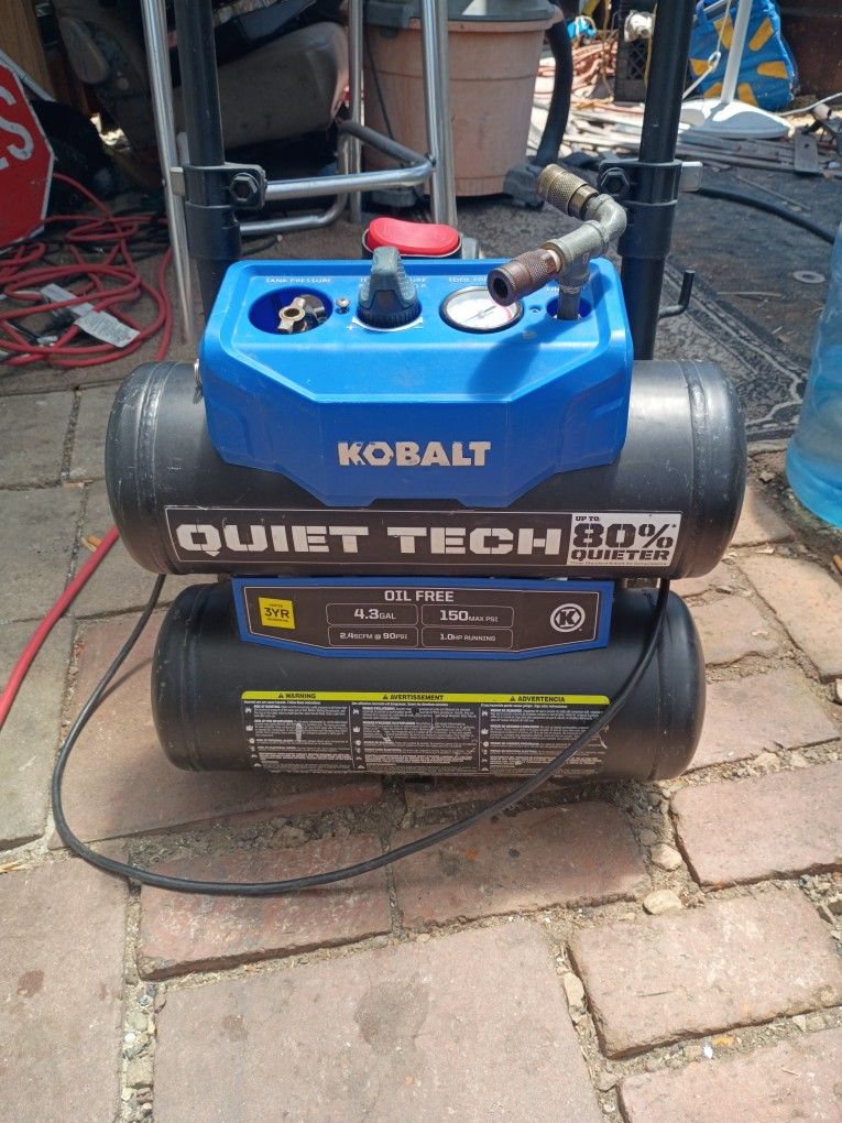 4.3gallon 2.4scfm @ 90 psi 150 psi $55 Works great but not really quiet like the sticker says. Good compressor 2