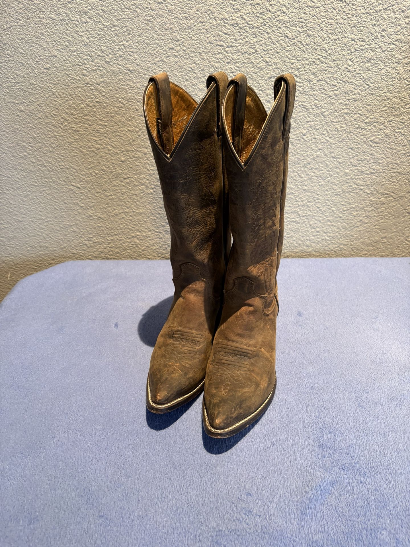 Women’s Bay Apache cowhide leather western boots by Justin style 4935 classic narrow rounded Toe. Size 6.5 B