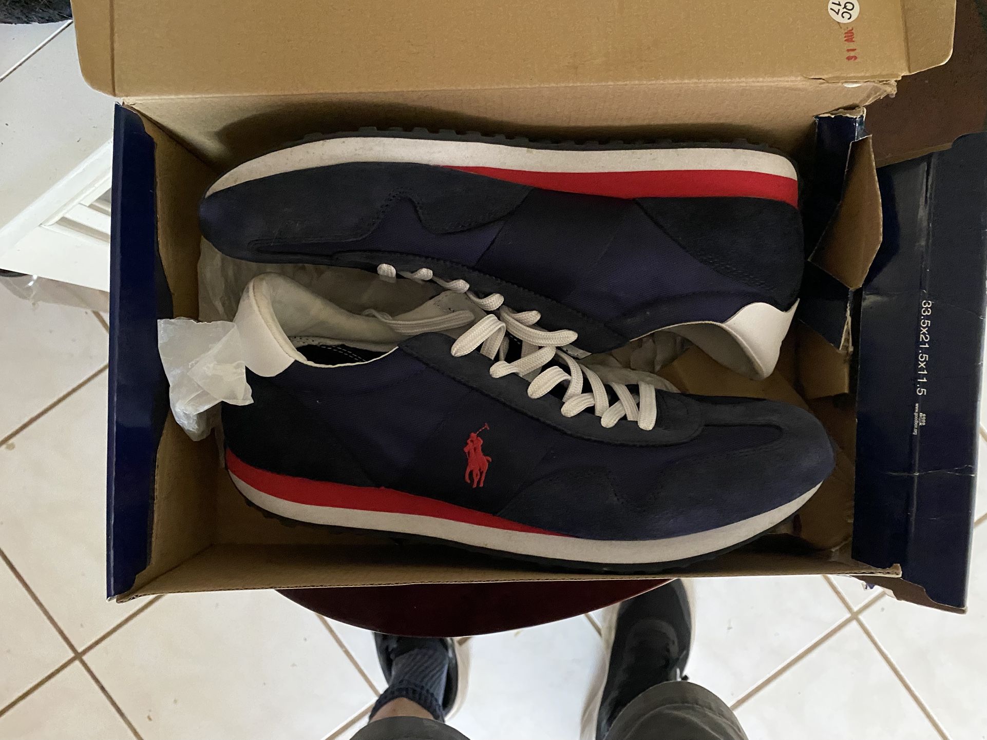 Only tried on once. In box. 10.5. Ralph Lauren sneakers. In box.