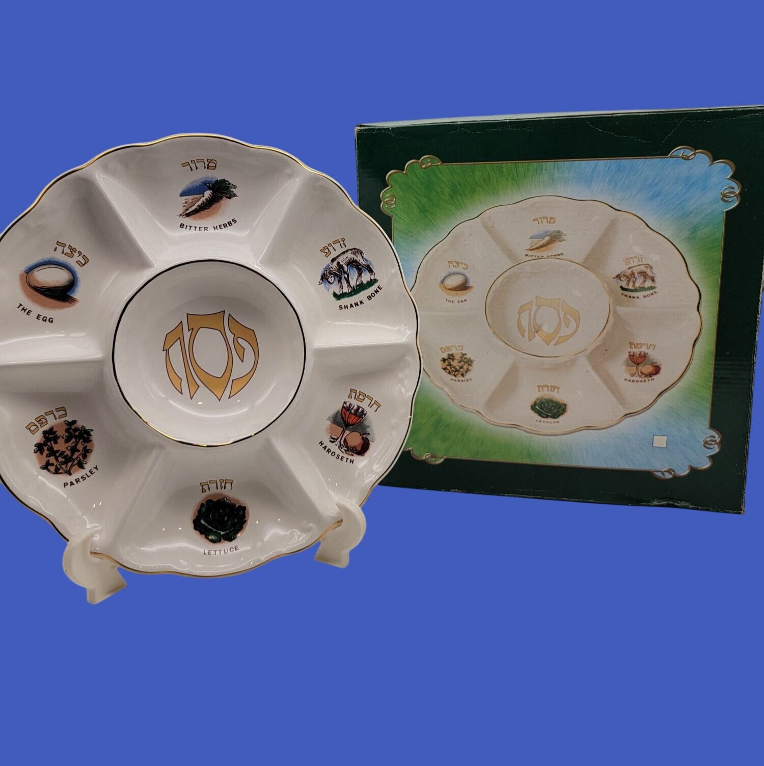 Vtg 12" Passover Seder Porcelain Plate Judaica, Hebrew & English Gold Rim Made in Israel