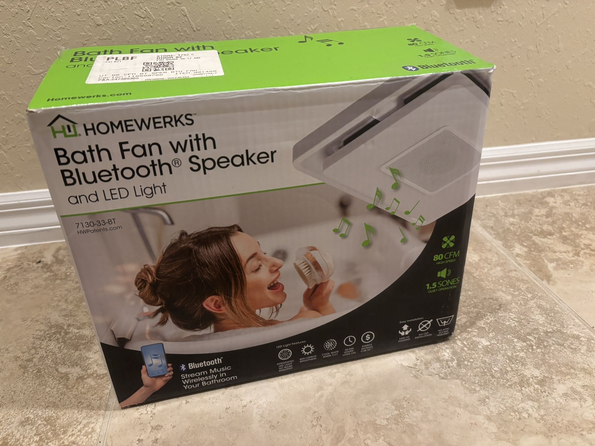 Homewerks White Decorative Lighted Bluetooth Speaker Bathroom Fan