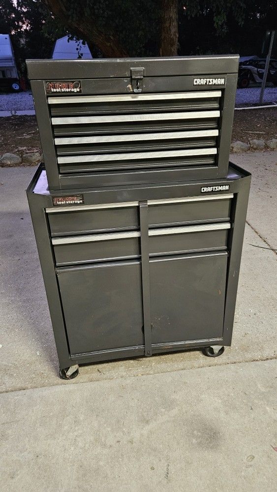 used in excellent condition craftsman tool box its 26" wide everything works on it gunmetal color made in the U.S.A.