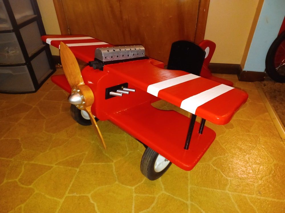 Kids ride on wood hand made airplane. One of a kind. In excellent condition selling for $200.00