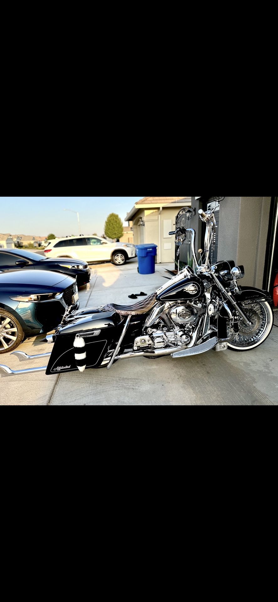 This is a magazine show wining gangstered out Vicla and speaks for itself. Photos don’t do any justice. I can send video shoots and more photos on request . . I’ve owned, built , customed , designed and babies this thing from scratch for 7 years. Second owner and it barely only has 2k miles on it ! Dyno tuned , chipped and loud as heck ! This is the Most sought out ride and all over every Vicla sites in Cali . This bike is known and have been seen by all those in the lifestyle . Every thing Custom one off . Whole engine chromed out, dirty air ride , progressive shocks in front . brand new tires and the first bike to have the new DNA Cali twisted spokes with Mercedes black coated nipples . Brand new everything. 1000 watt 6 speaker sound system heard for miles , custom apes , stretched fenders both rear and front ! Stretched bags and even brand new 1.50” front crash bars and triple chrome rear stretched bag guards . Nothing stock and ready for the show or to show off on the street ! New LED Digital gauge , LED under glow lights with remote , tinted lenses , custom stitch one off seats , all done by the best in the game ( Ballin Customz in TX does all my seats ) . Steady Custom Cycles in Cali sponsors this baby and made the pipes bars and guards . . Won’t find a bike more gangster looking bike than this one. Never thought I would get rid of this King . But itching for a Chevy Bomb ( BelAir/Deluxe ) , Impala/Caprice 62-68, or done up C10 or 3100 truck 59-67….If you know Harley’s and all these things costs then you know this has more than $35k invested and counting , do not message unless u are interested and can make a REAL cash offer . If you have a bomb , C10 or 3100 old school truck, Caprice or impala to trade then let’s see it. No projects and must be of equal condition and performance . Not looking for something that leaks and don’t run or missing parts. .. this has a clean title and pink in my name with $60k insurance. For the right trade valued more than $35-$45K then I , will also throw in $10,000 on top for even value swap. . U will be blown away by the details and every small addition and attention to detail . Literally Too much to list but have videos and even more details to show and share . And . Again , Only has 2000 miles on the engine . Original Miles !!!! Yup. Only.2k miles And it’s a 2006 and like brand new !! Nothing but the best and gets all the attention and drools whoever it’s at ! Wins every show this is not a flip , this is MIY personal bike. My pride and joy . . Hit me up ONLY if interested. Don’t want projects and please don’t offer low ball disrespectful cash price if you don’t have the money and it sure won’t be the TEEN in green $$$. Bike is located in Cali. Again , willing to trade with cash on top for the right ride listed above. Can discuss shipping and delivery if needed . #vicla #gangster #carlini #impala
