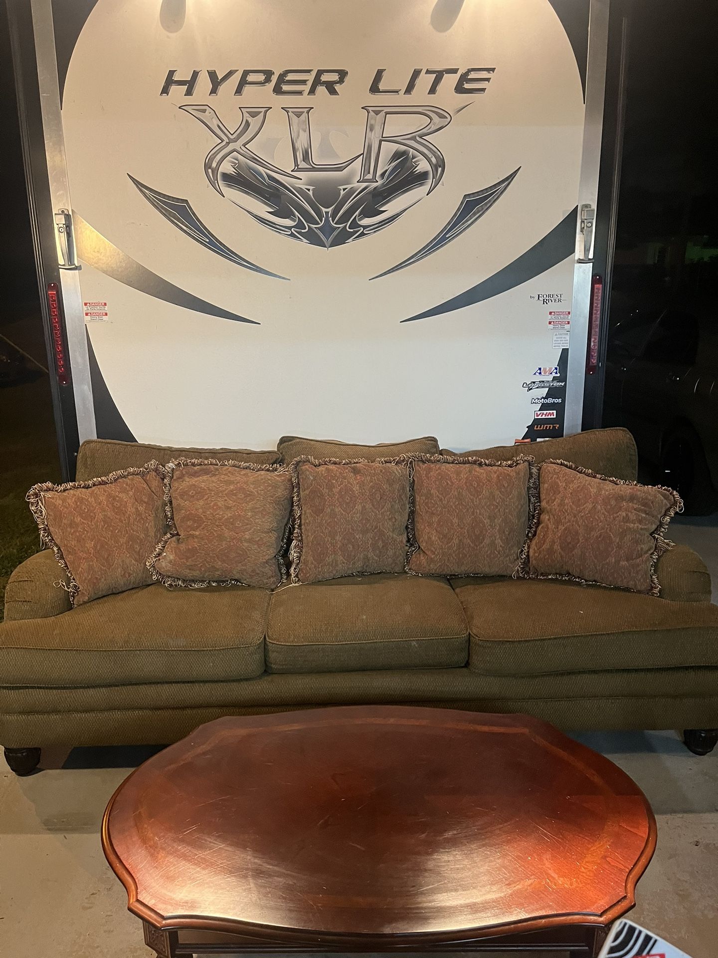 Selling a great couch because we got a new one. The table is included in the bundle. Send me your offers, and we can deliver!