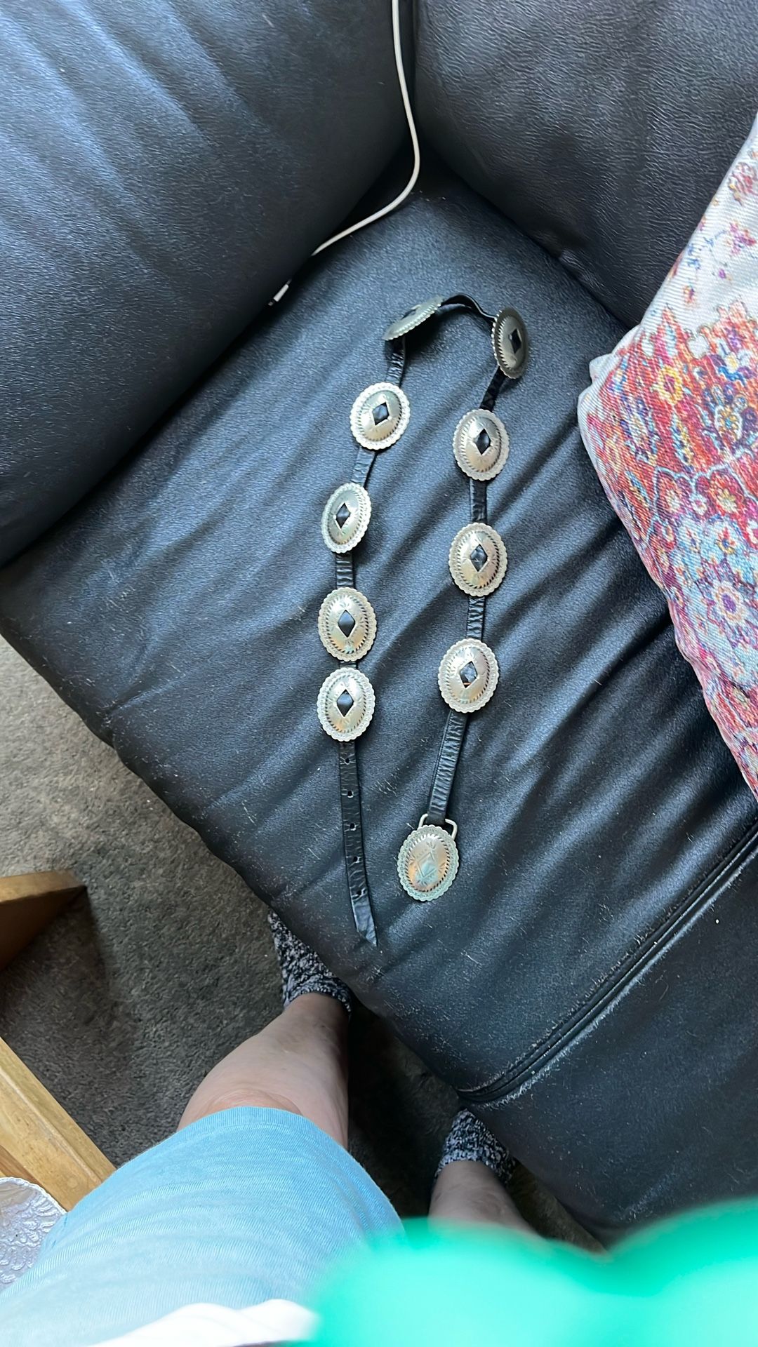 Black thin strap adjustable belt https://offerup.com/redirect/?o=dW5pc2V4Lkl0 has 3-4” more to make larger.