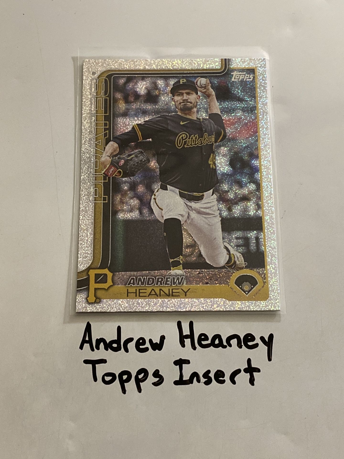 2025 Topps Short Print Sand Glitter Parallel Insert Card of Pirates Pitcher Andrew Heaney. Local pick up only. Price firm. LISTING #95.