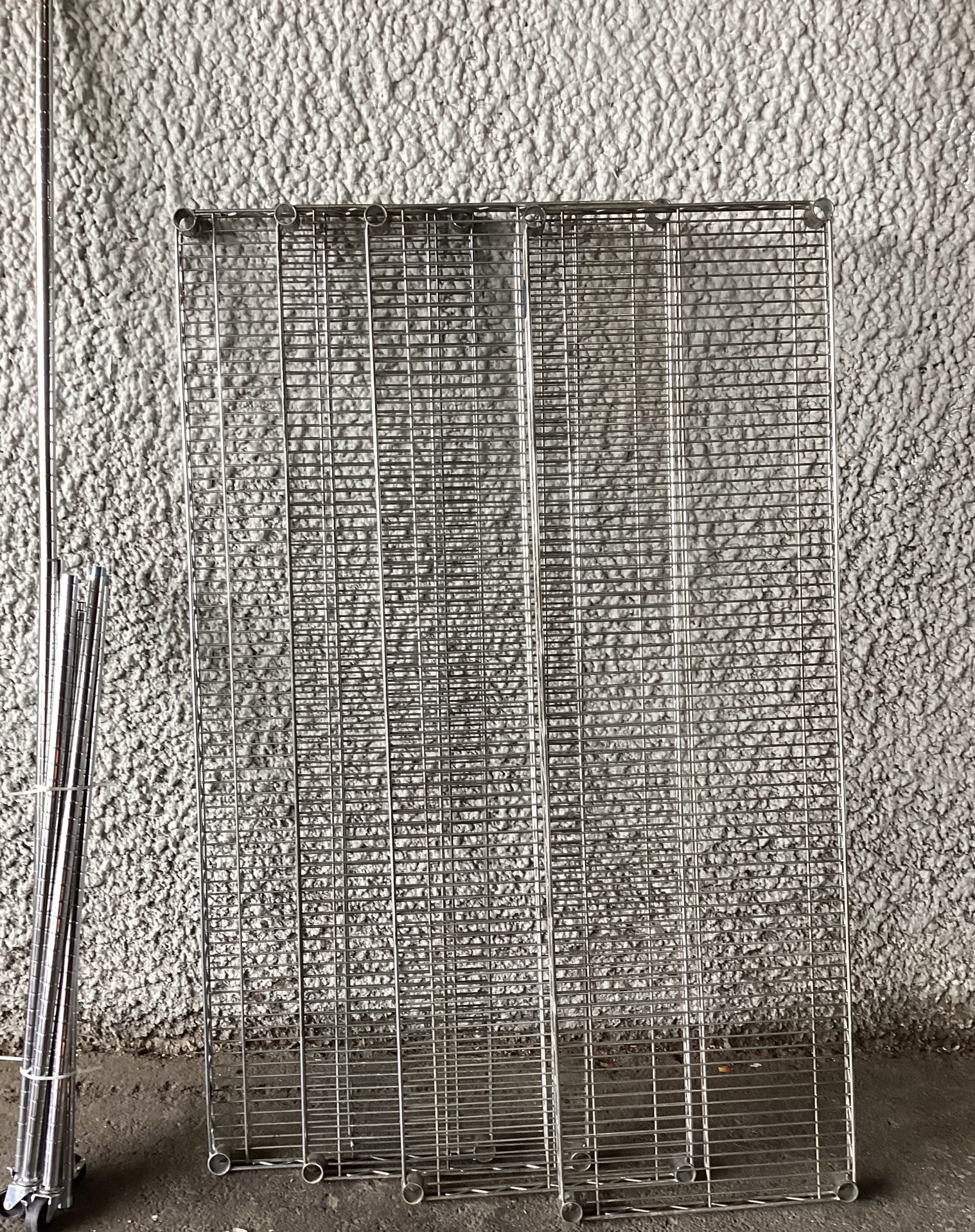 Commercial steel wires shelving In good condition with wheels 4 shelving Long 60” Deep 18” High. 72