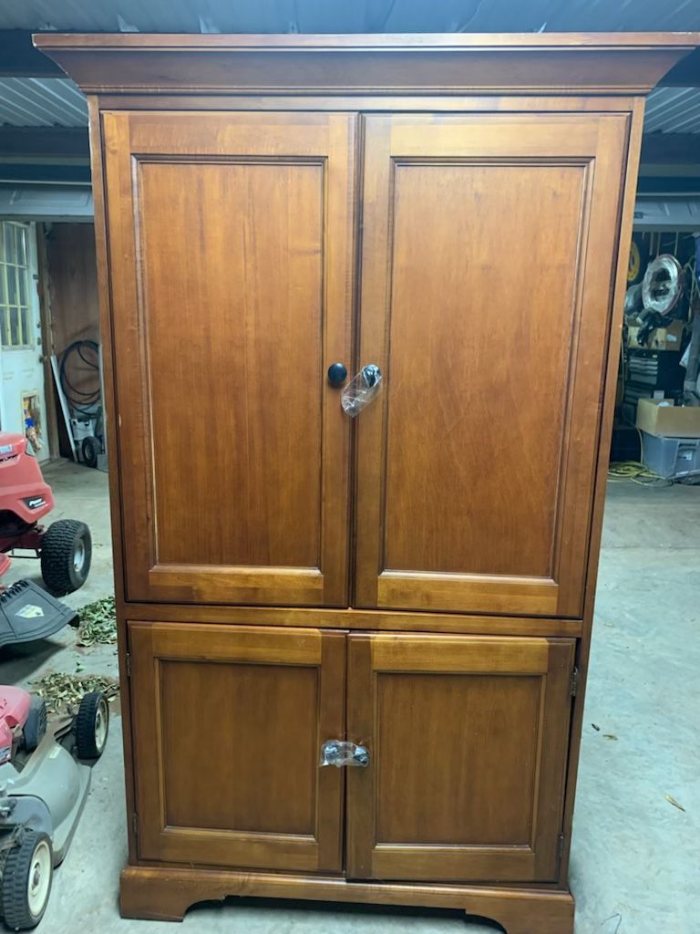 Beatiful wood entertainment center ,very heavy in perfect condition it fits a 36 inch tv in it has space on the bottom for storage ,mpu only msg if interested .