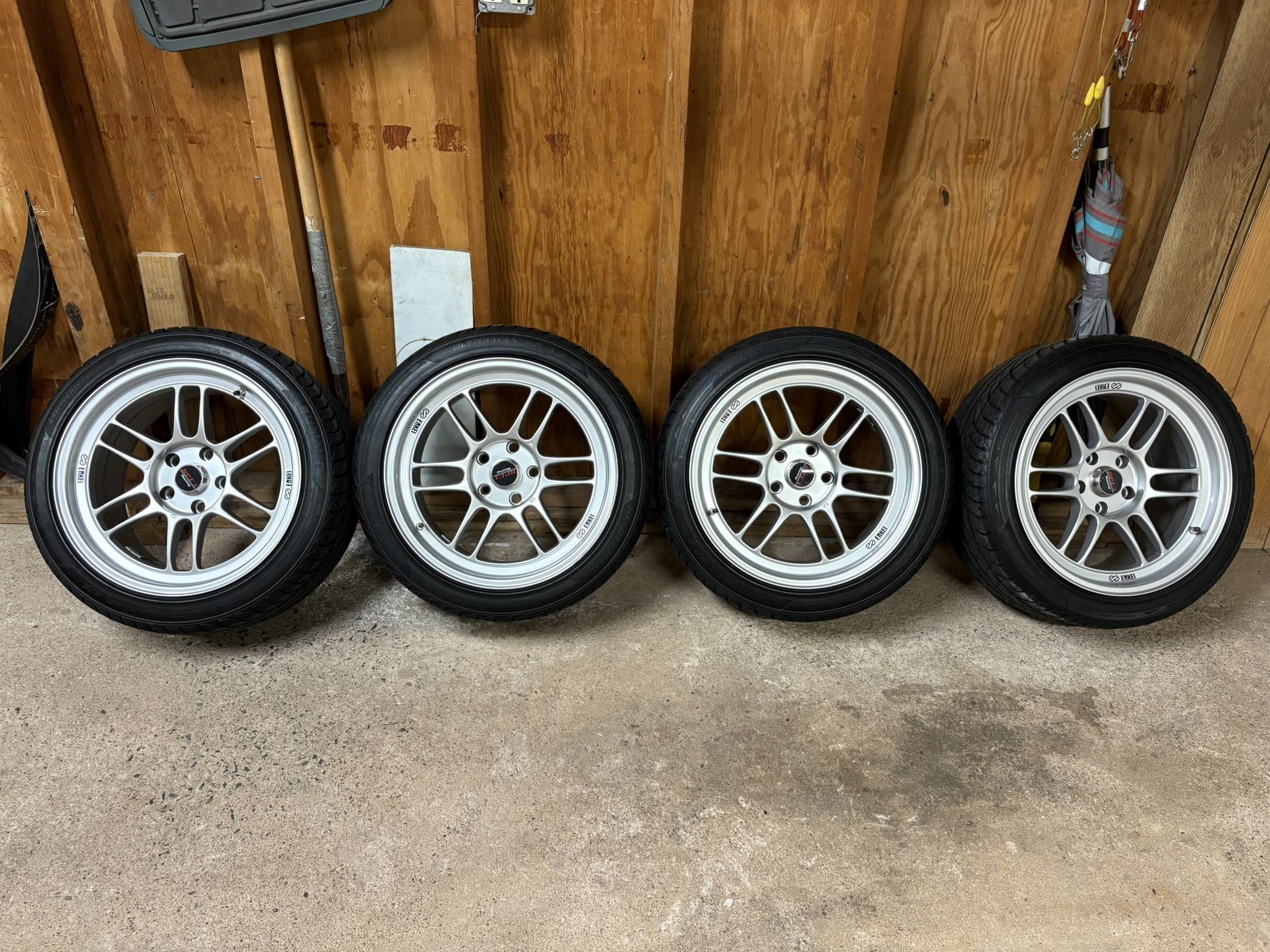 Clean set of Enkei RPF1 Hyper Silver 17x9+22. Rims are in excellent condition with 1 rim having slight curb rash (see picture). Tires like new are Summit Ultramax HP high performance all season 245/40/17. Rims and tires have less than 3000 miles on set up, comes with Autel Programable 315/433 TPMS, Enkei center caps, and 64.1 hub centric rings, and black spline lugs (not pictured). Wheels are balanced ready for new owner. Looking for $1350 FIRM, NO trades, Located in Manchester CT.