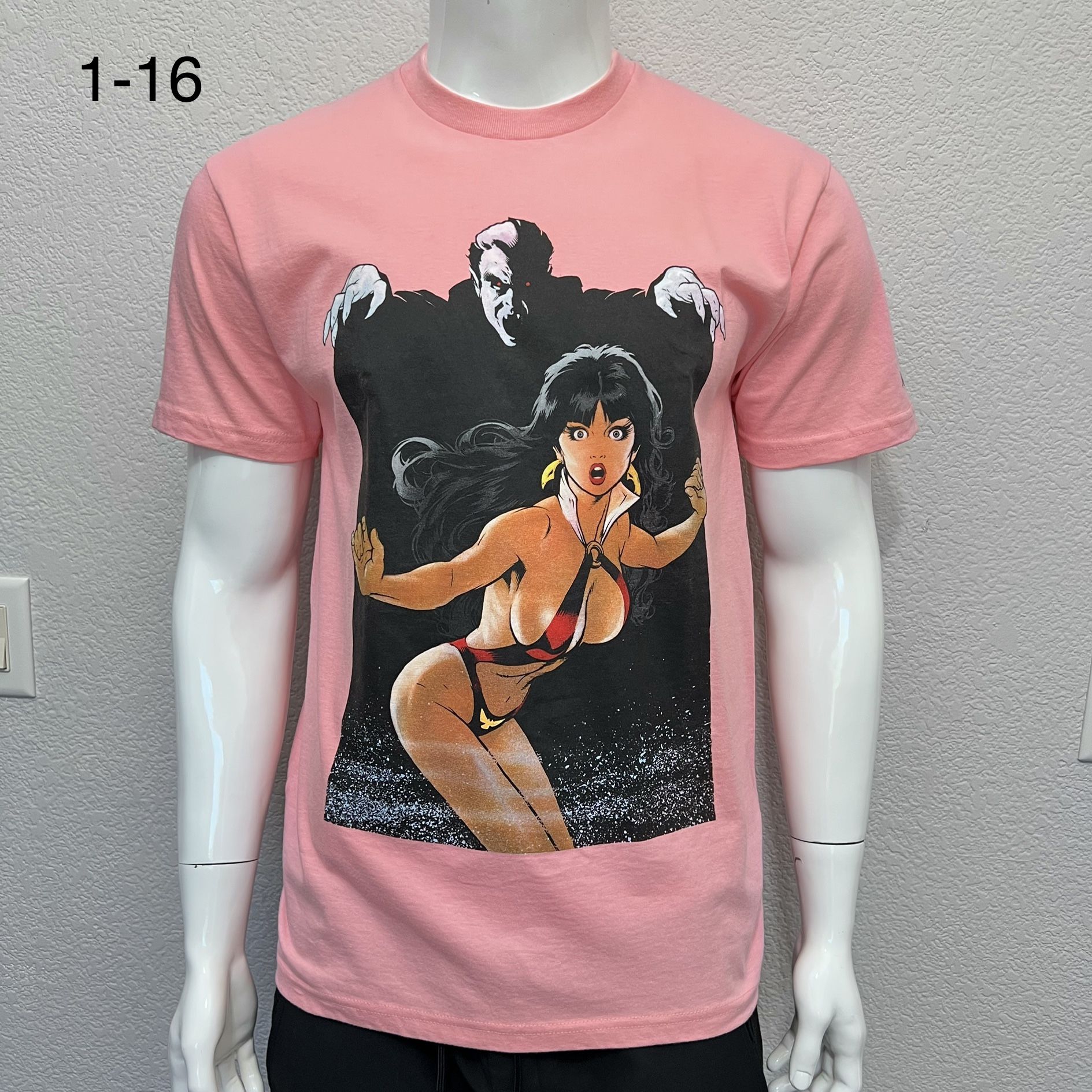 Coral Pink Vampire Anime Graphic Men L Streetwear Tee Retro Parody Style