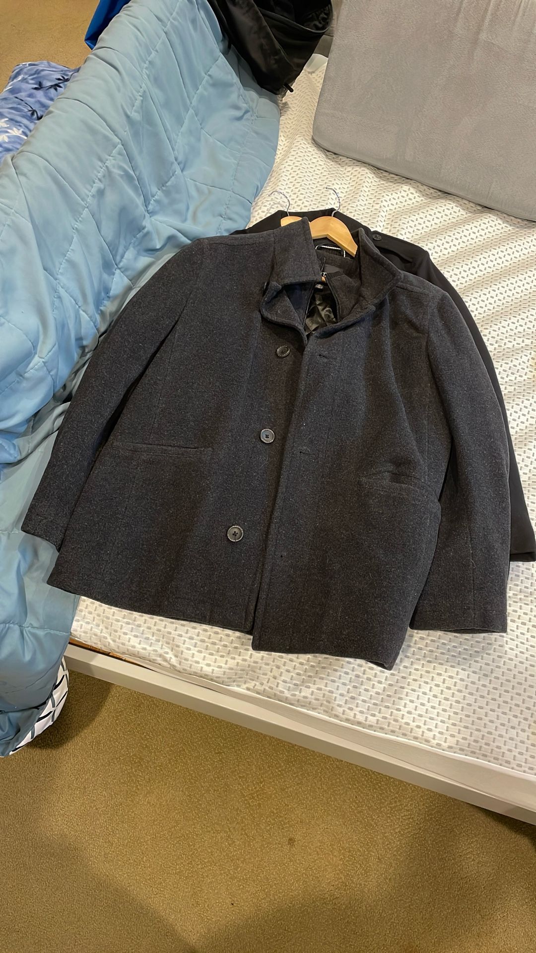 Black and dark grey. Wool, cashmere nylon material $100 each or $150 for both