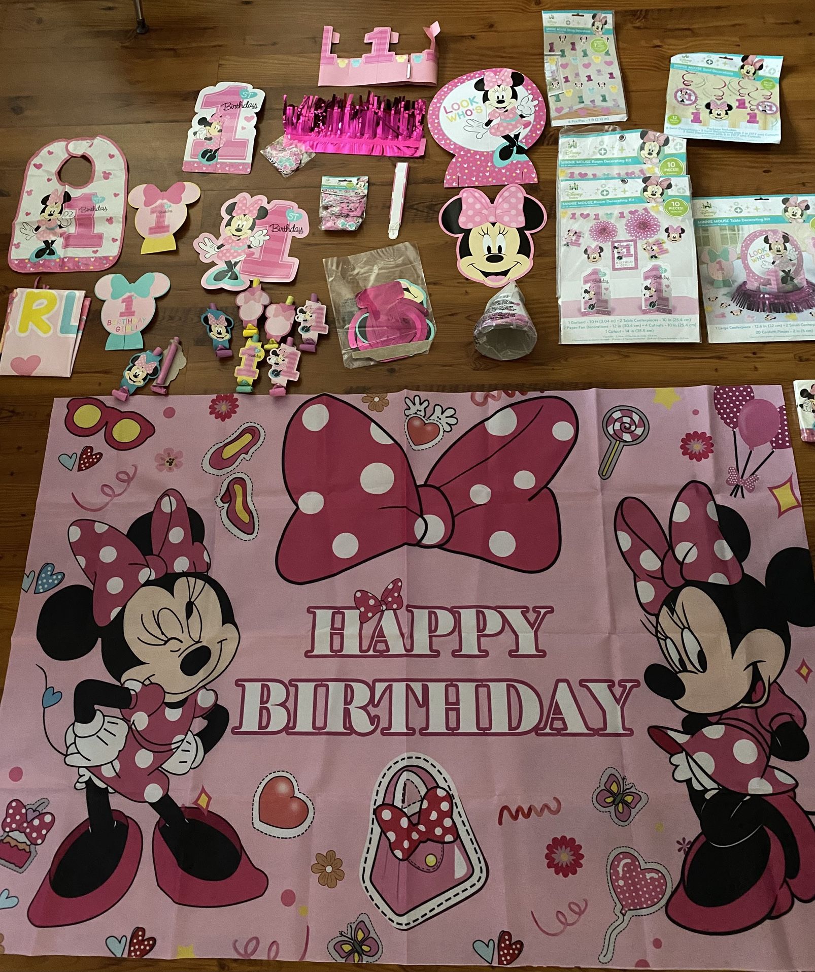 Minnie Mouse 1st Birthday Decorations. It was used for grand daughters Birthday. Some are still in package and were not used. This will probably be everything you’ll need to decorate.