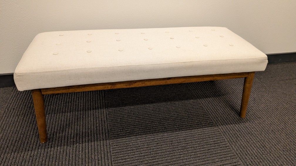 Bench dimensions 47.5" L x 17.75" W x 18" H Lightly used bench for end of bed, home entry, office, dining table bench, or living room. It is in great condition and purchased off of Wayfair 2 years ago for $230.